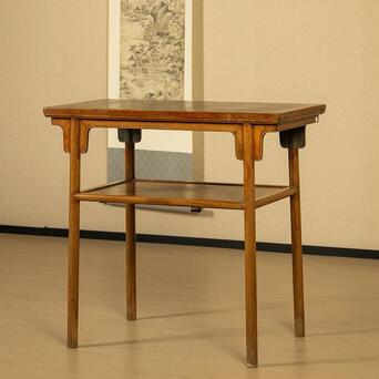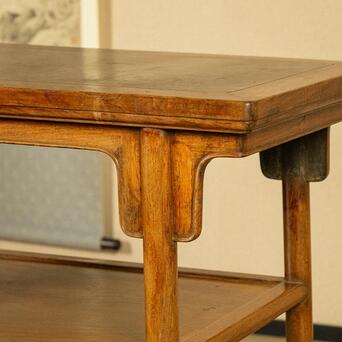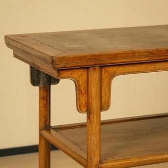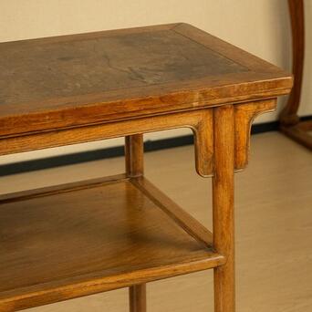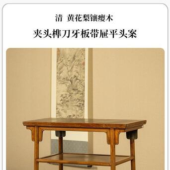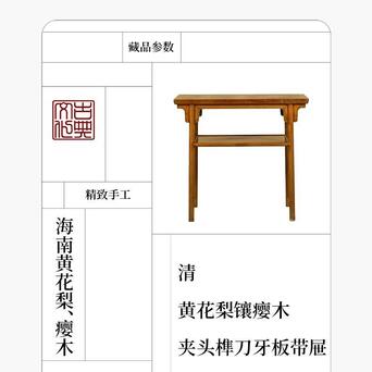 清 黄花梨镶瘿木夹头榫刀牙板带屉平头案