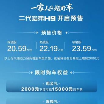 【全新哈弗H9正式预售!】 新车共有3款车型,预售价区间为20.59-23.59万元。 定位依然是非承载式车身的硬派越野车什么是私募股票,提供前中后三把差速锁和第二代全地形控制系统。 长宽高分别为5070/1960、1976/1930mm,轴距为2850mm;并提供17-19英寸多种轮圈供消费者选择。 车内座椅将提供5座以及7座版本,5座版后备厢尺寸容积为791L,第二排座椅放平后容积为1814L。 动力方面,提供2.0T+8AT的组合。 在硬派越野的领域,哈弗品牌始终有着很高的影响力,期待全新哈弗H9能够将优势继续保持。#2024成都车展#