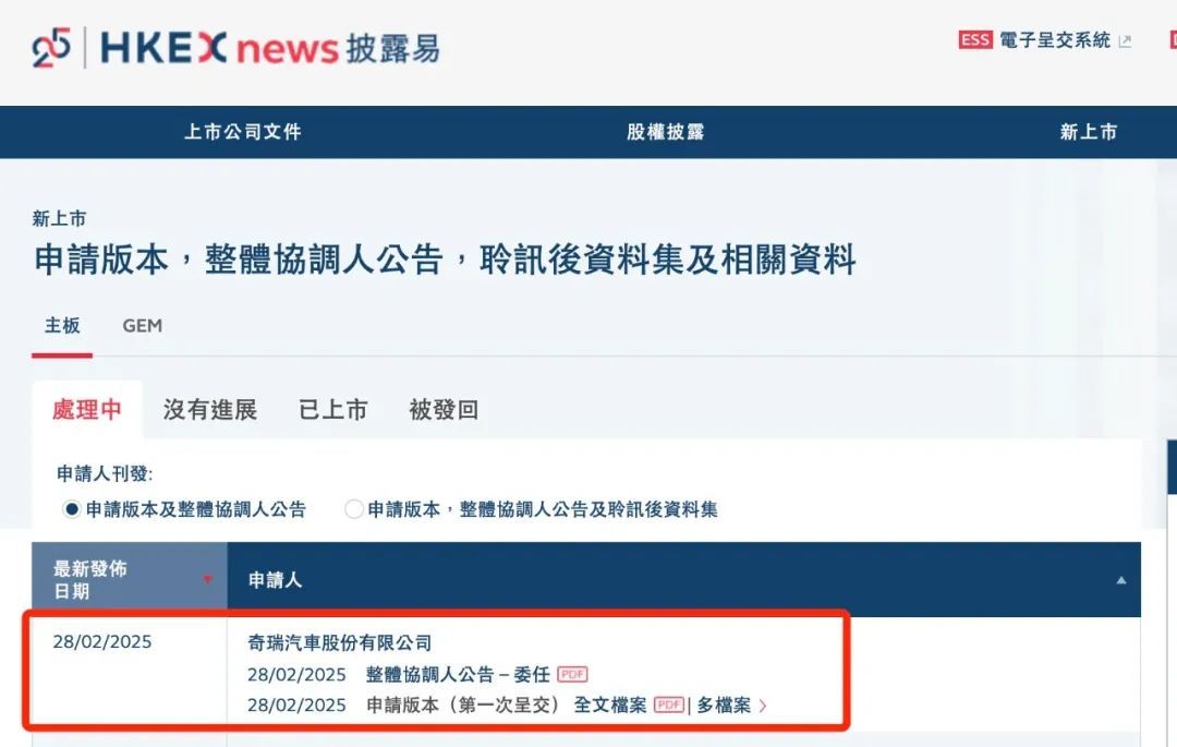 2月28日股票配资公司平台,港交所文件显示,奇瑞汽车正式向港交所递交上市申请。此次申请上市标志着这家深耕国际市场二十余年的车企,在汽车产业变革浪潮中开启资本化运作新阶段。